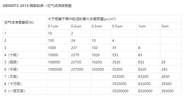 空氣潔凈度等級(jí)(air cleanliness class):潔凈空間單位體積空氣中,以大于或等于被考慮粒徑的粒子最大濃度限值進(jìn)行劃分的等級(jí)標(biāo)準(zhǔn)。國內(nèi)按空態(tài)、靜態(tài)、動(dòng)態(tài)對無塵車間進(jìn)行測試、驗(yàn)收,符合《GB50073-2013 潔凈廠房設(shè)計(jì)規(guī)范》、《GB50591-2010 潔凈室施工及驗(yàn)收規(guī)范》。